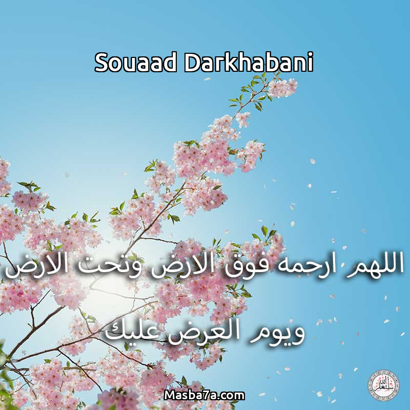 اللهم ارحم ( Souaad Darkhabani ) وانس وحشته واجمعنا به في جنتك ، اللهم ارحمه بقدر شوقنا له اللهم ارحمه واغفر له .
