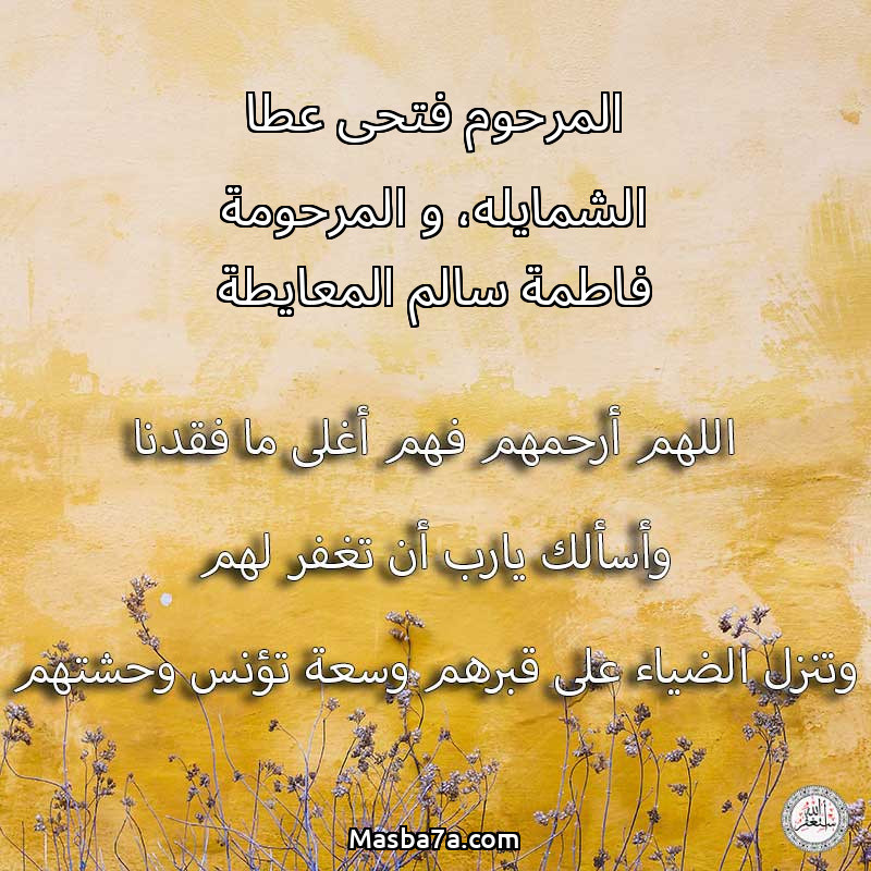 دعاء عن أرواح المرحومين المرحوم فتحى عطا الشمايله، و المرحومة فاطمة سالم المعايطة