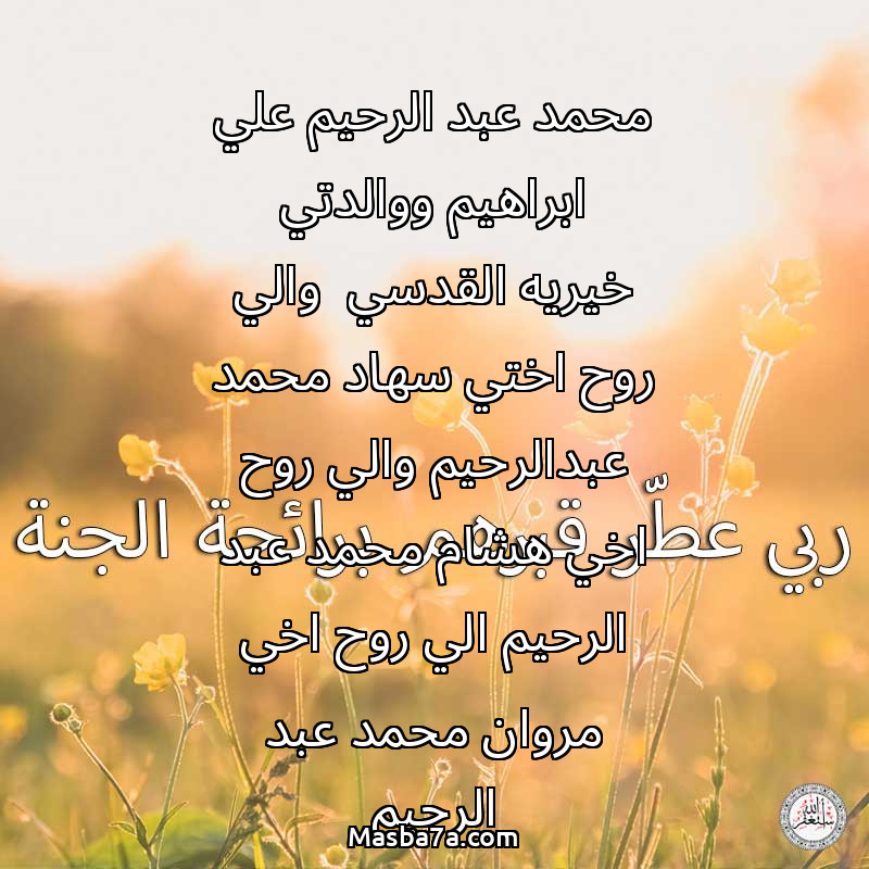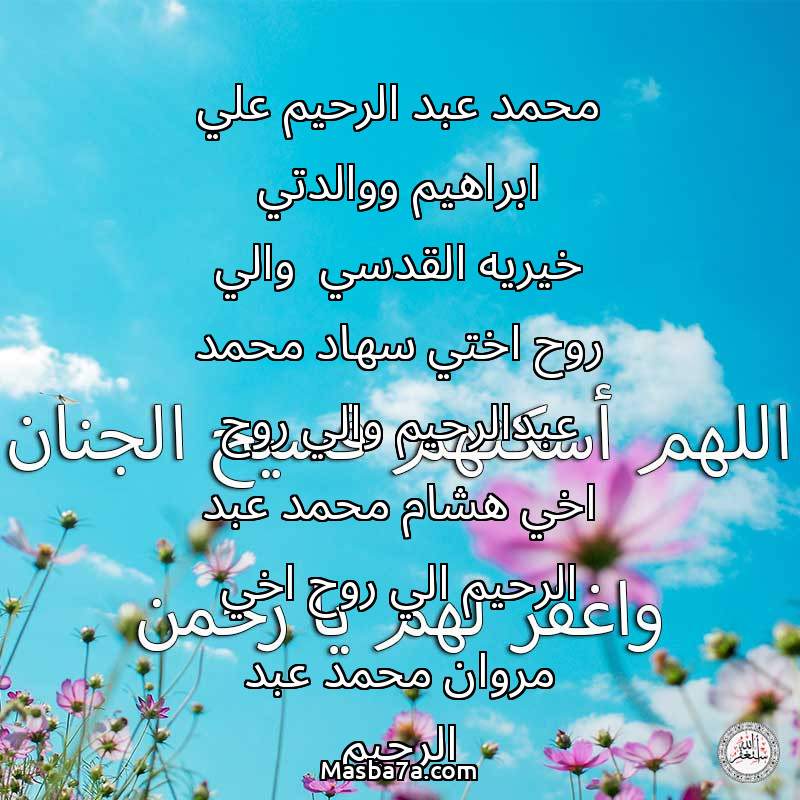 دعاء عن أرواح المرحومين محمد عبد الرحيم علي ابراهيم ووالدتي خيريه القدسي والي روح اختي سهاد محمد عبدالرحيم والي روح اخي هشام محمد عبد الرحيم الي روح اخي مروان محمد عبد الرحيم