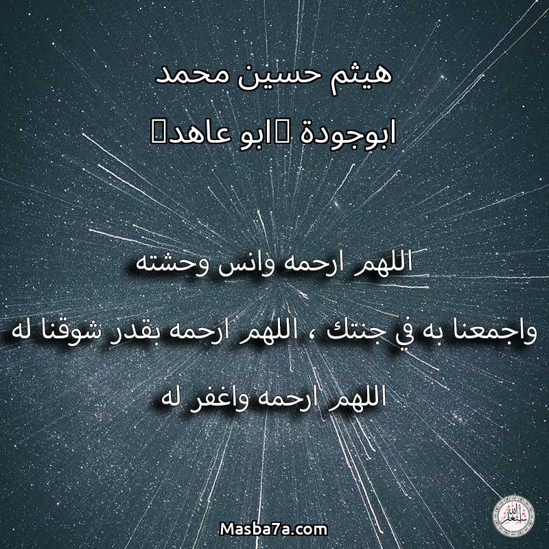 اللهم ارحم ( هيثم حسين محمد ابوجودة (ابو عاهد) ) وانس وحشته واجمعنا به في جنتك ، اللهم ارحمه بقدر شوقنا له اللهم ارحمه واغفر له .