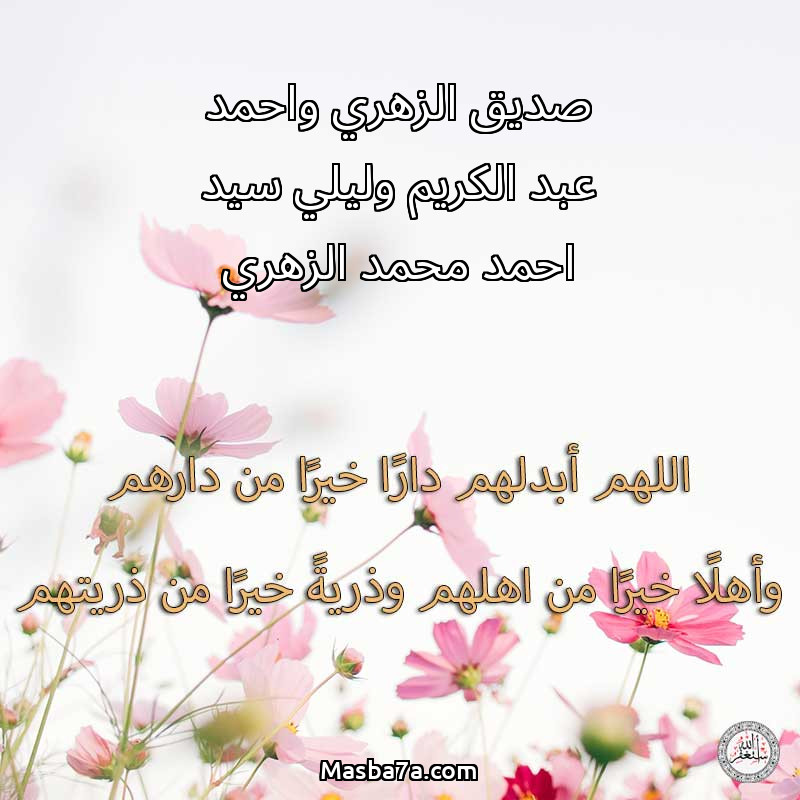 اللهم ارحم ( صديق الزهري واحمد عبد الكريم وليلي سيد احمد محمد الزهري ) وانس وحشتهم واجمعنا بهم في جنتك ، اللهم ارحمهم بقدر شوقنا لهم اللهم ارحمهم واغفر لهم.