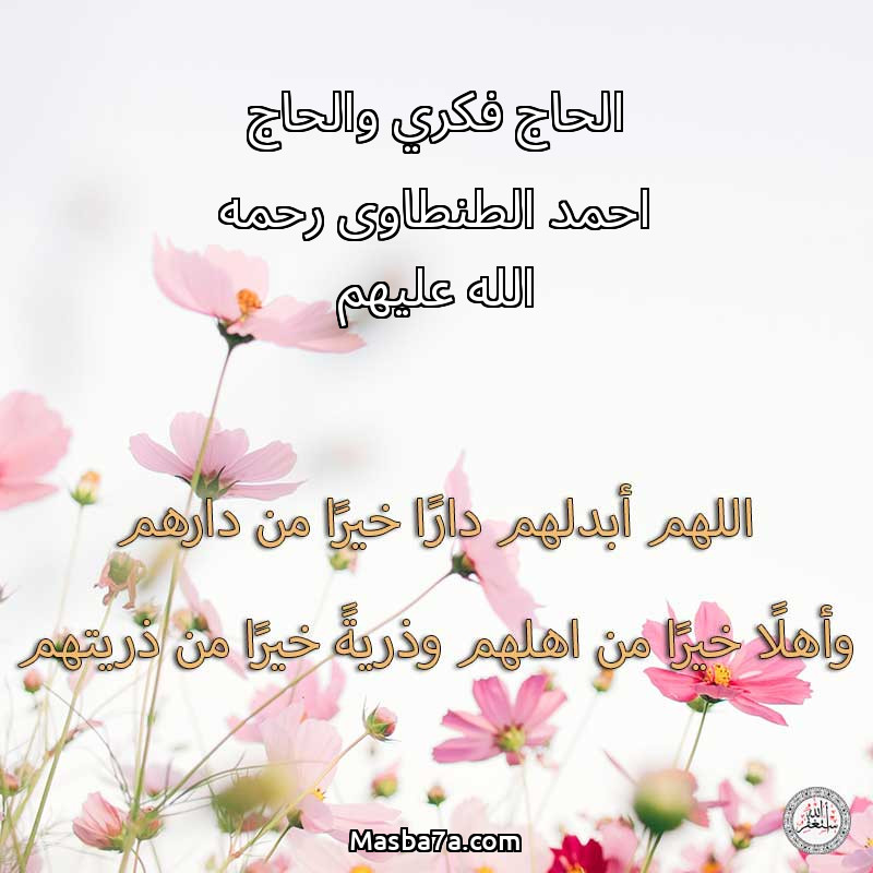 اللهم ارحم ( الحاج فكري والحاج احمد الطنطاوى رحمه الله عليهم ) وانس وحشتهم واجمعنا بهم في جنتك ، اللهم ارحمهم بقدر شوقنا لهم اللهم ارحمهم واغفر لهم.