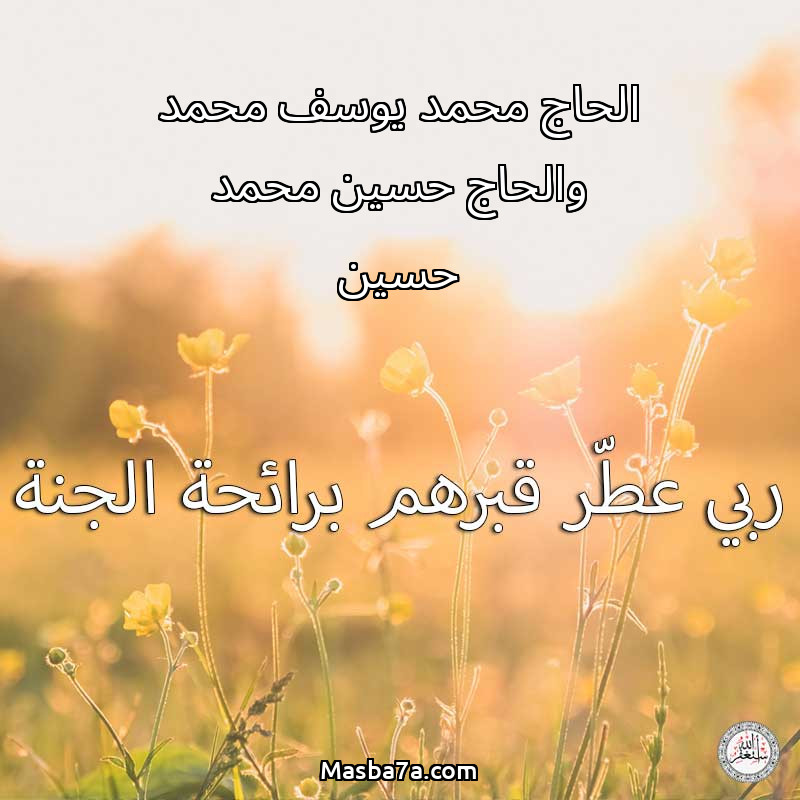 اللهم ارحم ( الحاج محمد يوسف محمد والحاج حسين محمد حسين ) وانس وحشتهم واجمعنا بهم في جنتك ، اللهم ارحمهم بقدر شوقنا لهم اللهم ارحمهم واغفر لهم.