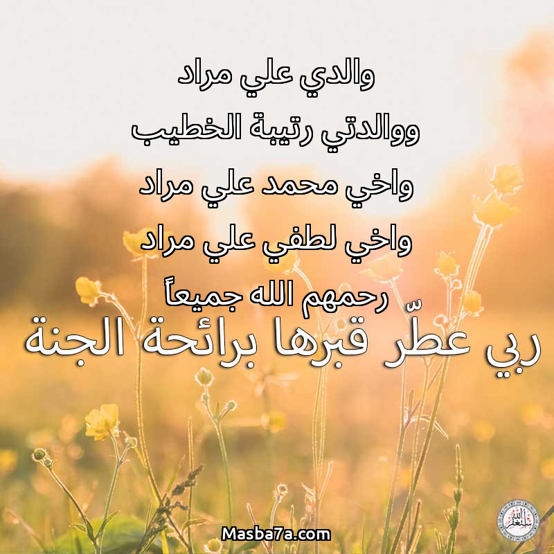 دعاء عن روح المرحومة والدي علي مراد ووالدتي رتيبة الخطيب واخي محمد علي مراد واخي لطفي علي مراد رحمهم الله جميعاً