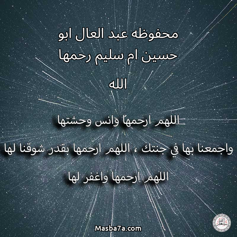اللهم ارحم ( محفوظه عبد العال ابو حسين ام سليم رحمها الله ) وانس وحشتها واجمعنا بها في جنتك ، اللهم ارحمها بقدر شوقنا لها اللهم ارحمها واغفر لها .