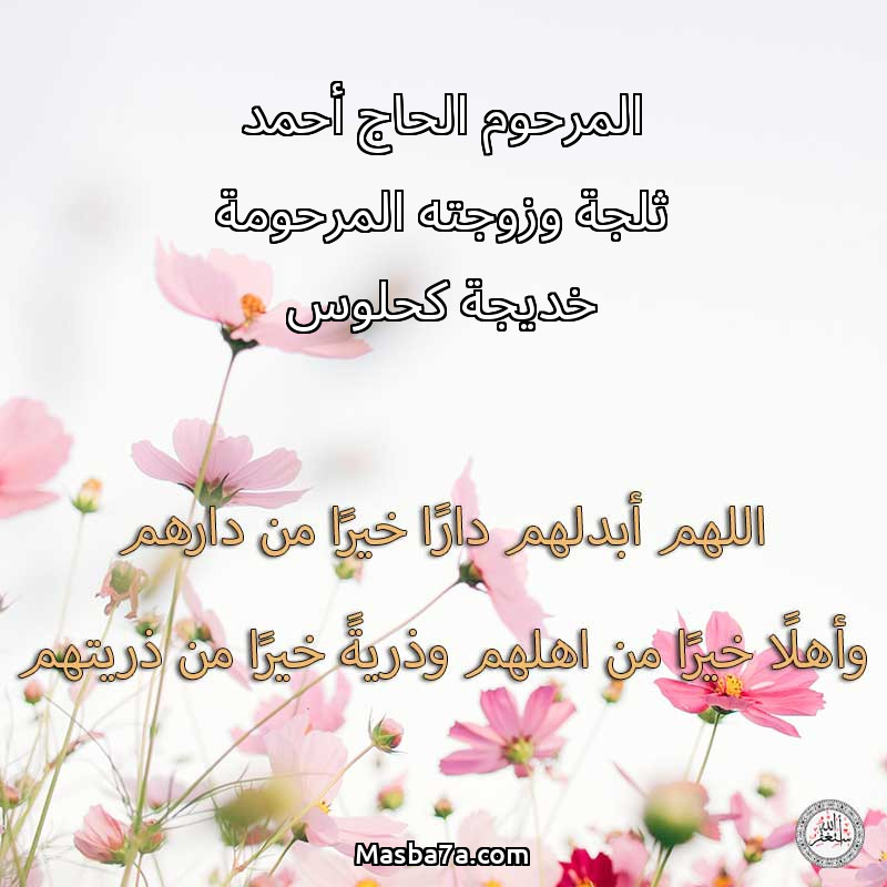 دعاء عن أرواح المرحومين المرحوم الحاج أحمد ثلجة وزوجته المرحومة خديجة كحلوس