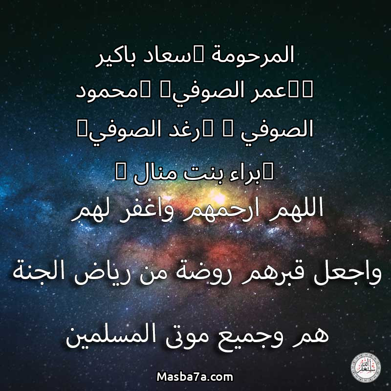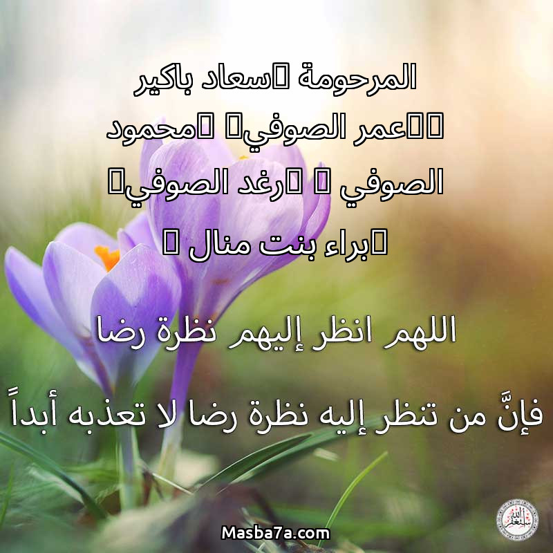 دعاء عن أرواح المرحومين المرحومة (سعاد باكير )(عمر الصوفي) (محمود الصوفي ) (رغد الصوفي) (براء بنت منال )