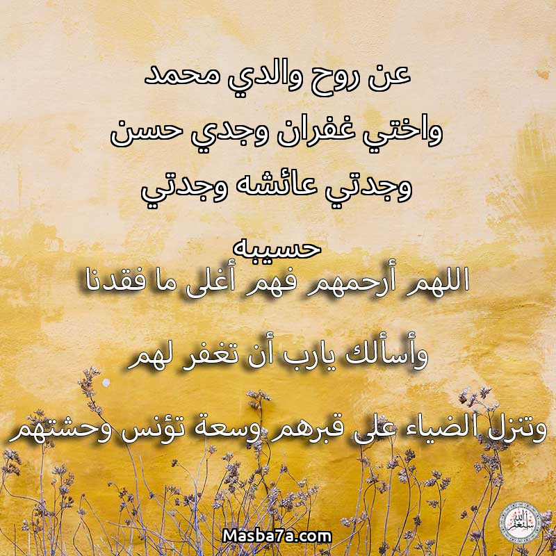 دعاء عن أرواح المرحومين عن روح والدي محمد واختي غفران وجدي حسن وجدتي عائشه وجدتي حسيبه