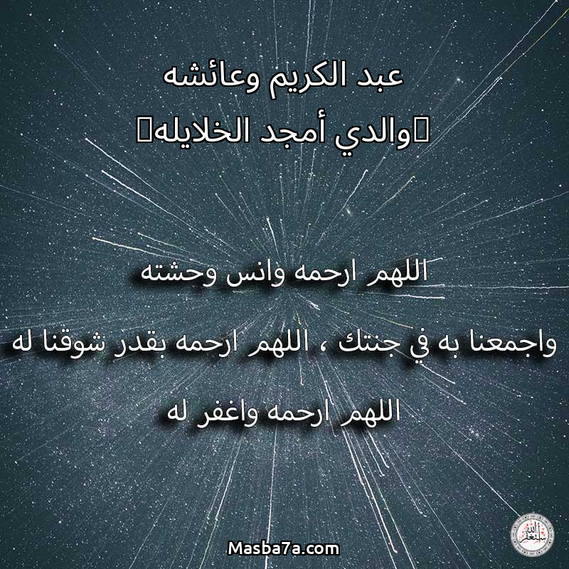 اللهم ارحم ( عبد الكريم وعائشه (والدي أمجد الخلايله) ) وانس وحشته واجمعنا به في جنتك ، اللهم ارحمه بقدر شوقنا له اللهم ارحمه واغفر له .