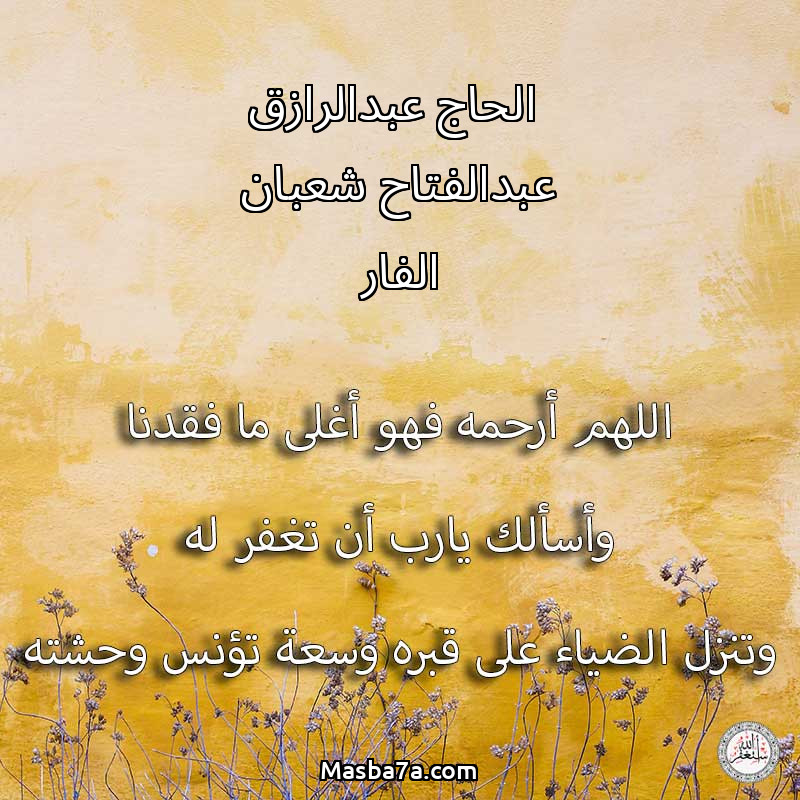 دعاء عن روح المرحوم الحاج عبدالرازق عبدالفتاح شعبان الفار