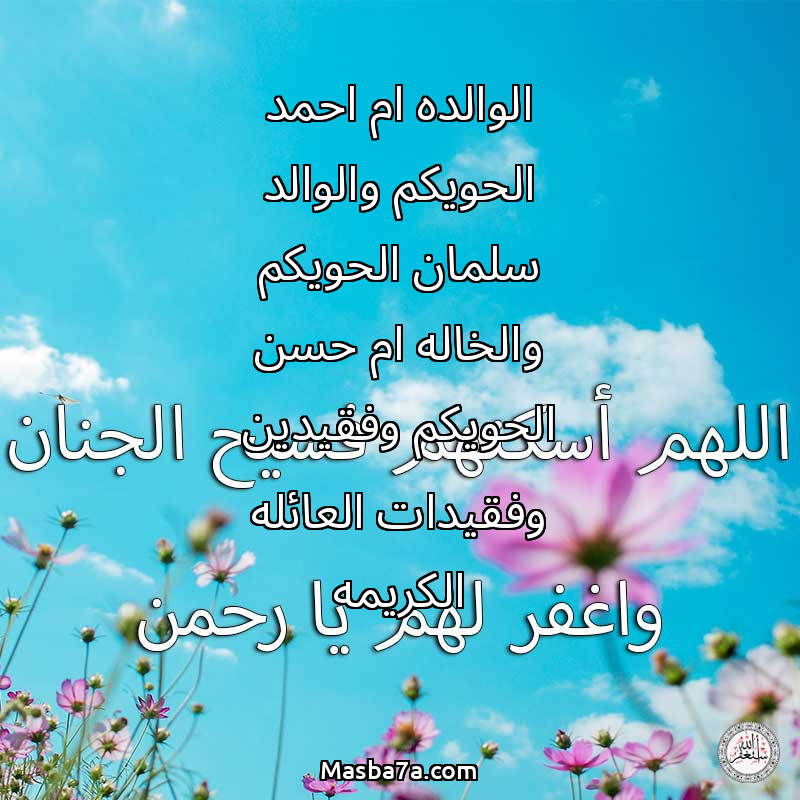 اللهم ارحم ( الوالده ام احمد الحويكم والوالد سلمان الحويكم والخاله ام حسن الحويكم وفقيدين وفقيدات العائله الكريمه ) وانس وحشتهم واجمعنا بهم في جنتك ، اللهم ارحمهم بقدر شوقنا لهم اللهم ارحمهم واغفر لهم.