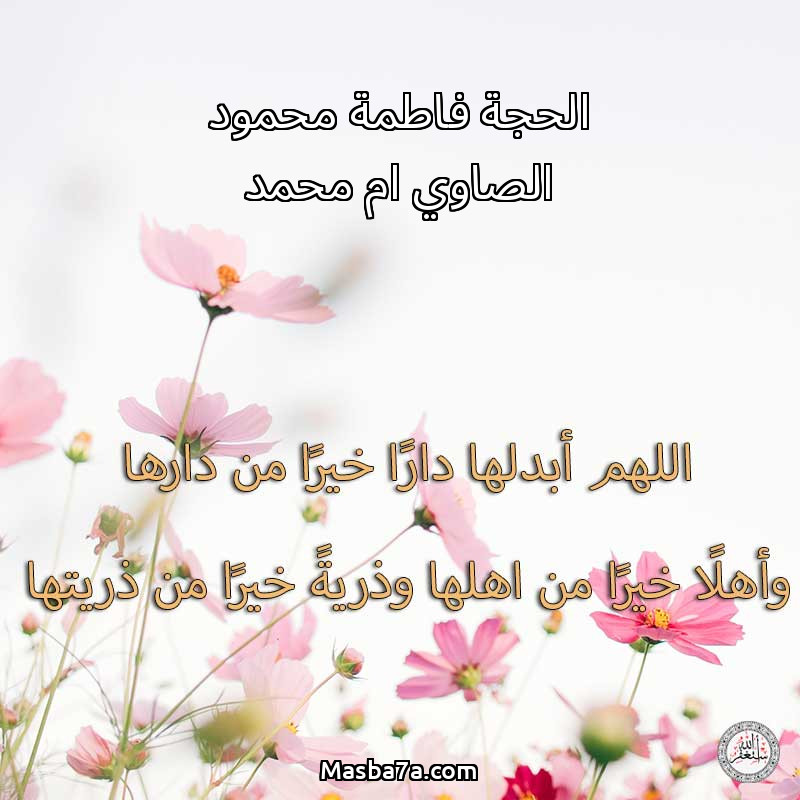 اللهم ارحم ( الحجة فاطمة محمود الصاوي ام محمد ) وانس وحشتها واجمعنا بها في جنتك ، اللهم ارحمها بقدر شوقنا لها اللهم ارحمها واغفر لها .