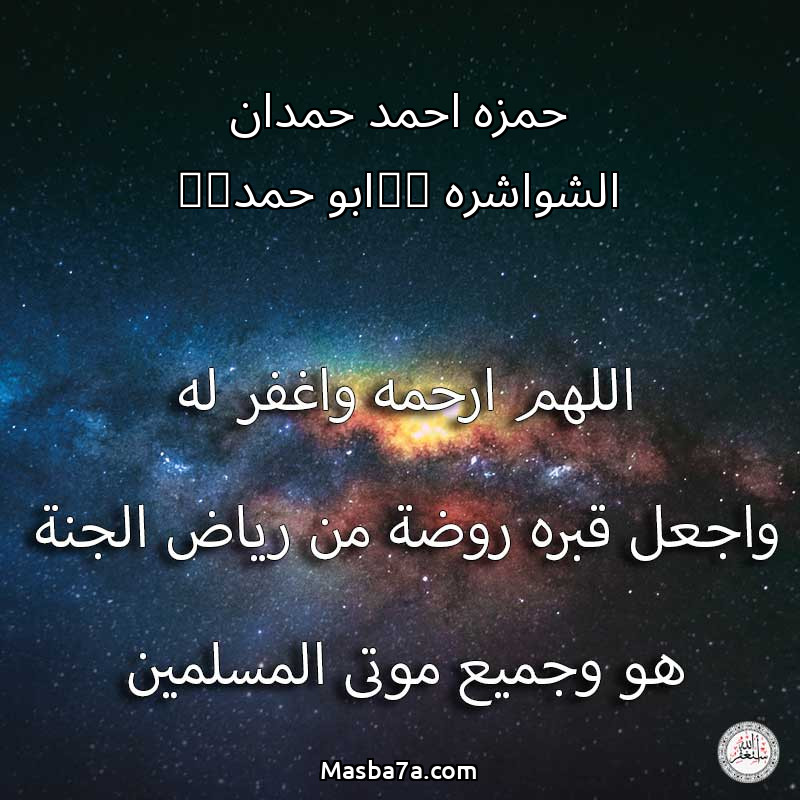 اللهم ارحم ( حمزه احمد حمدان الشواشره ((ابو حمد)) ) وانس وحشته واجمعنا به في جنتك ، اللهم ارحمه بقدر شوقنا له اللهم ارحمه واغفر له .