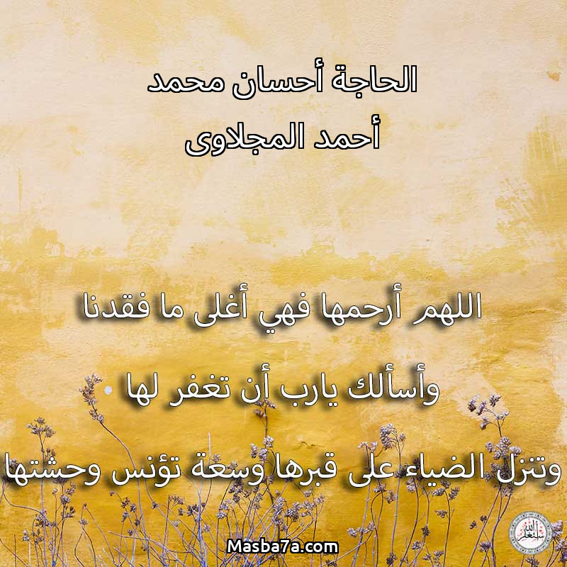 دعاء عن روح المرحومة الحاجة أحسان محمد أحمد المجلاوى