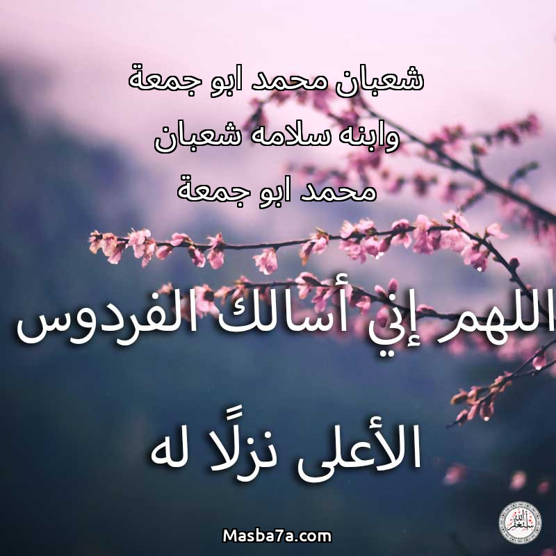 اللهم ارحم ( شعبان محمد ابو جمعة وابنه سلامه شعبان محمد ابو جمعة ) وانس وحشته واجمعنا به في جنتك ، اللهم ارحمه بقدر شوقنا له اللهم ارحمه واغفر له .
