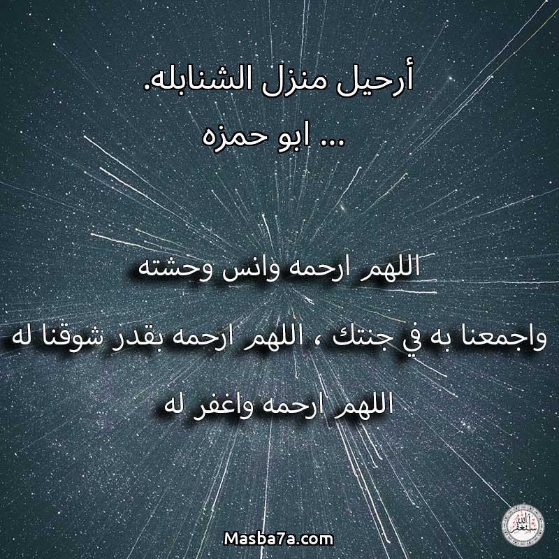 اللهم ارحم ( أرحيل منزل الشنابله. ... ابو حمزه ) وانس وحشته واجمعنا به في جنتك ، اللهم ارحمه بقدر شوقنا له اللهم ارحمه واغفر له .