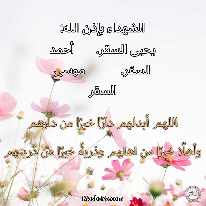 دعاء عن أرواح المرحومين الشهداء بإذن الله: يحيى السقر. أحمد السقر. موسى السقر