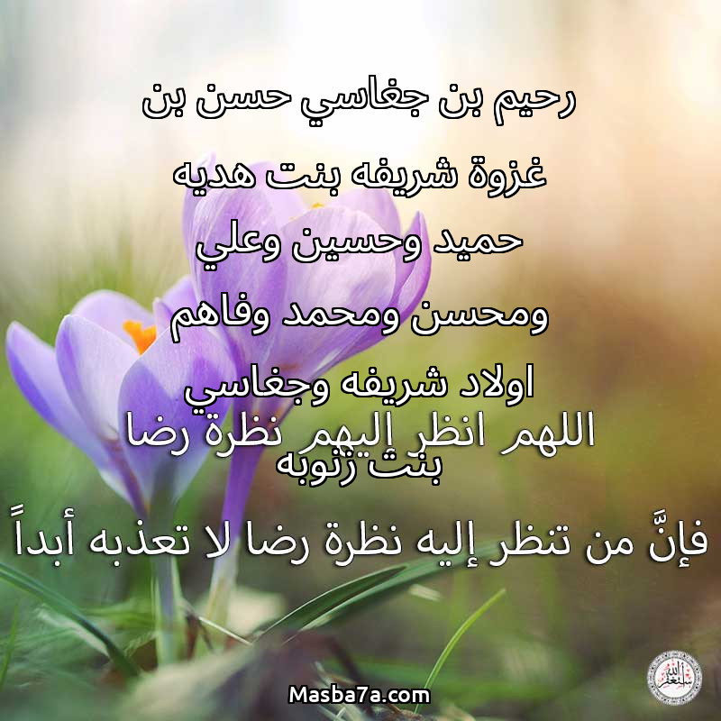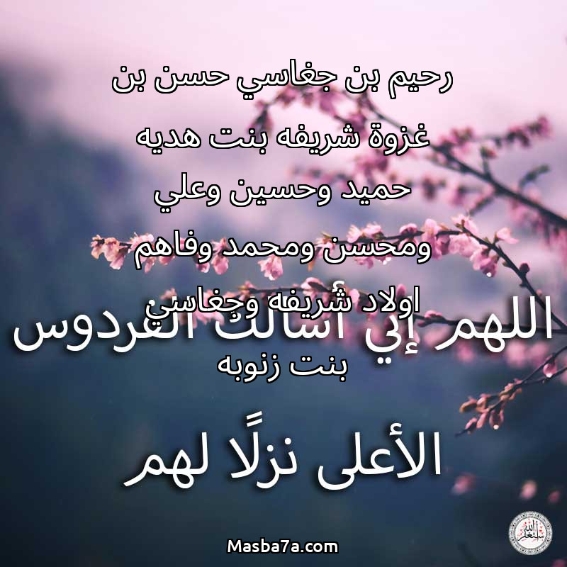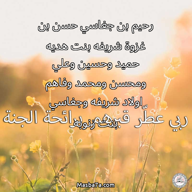 دعاء عن أرواح المرحومين رحيم بن جغاسي حسن بن غزوة شريفه بنت هديه حميد وحسين وعلي ومحسن ومحمد وفاهم اولاد شريفه وجغاسي بنت زنوبه