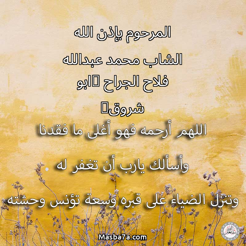دعاء عن روح المرحوم المرحوم بإذن الله الشاب محمد عبدالله فلاح الجراح (ابو شروق)