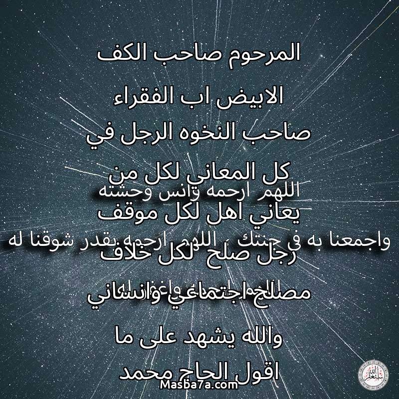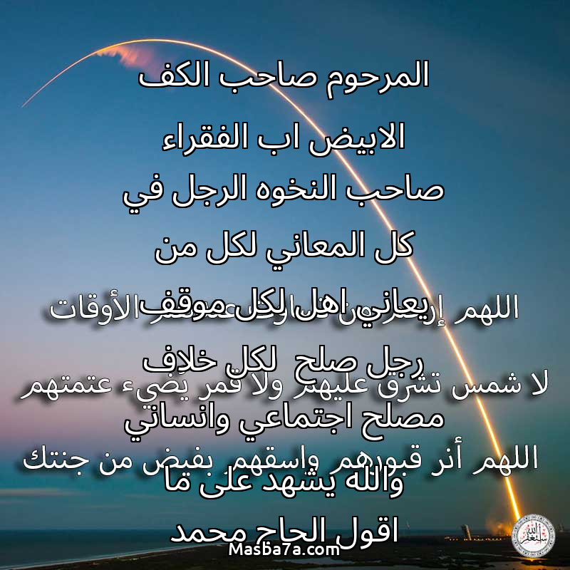 دعاء عن روح المرحوم المرحوم صاحب الكف الابيض اب الفقراء صاحب النخوه الرجل في كل المعاني لكل من يعاني اهل لكل موقف رجل صلح لكل خلاف مصلح اجتماعي وانساني والله يشهد على ما اقول الحاج محمد عبدالله خوجه رحمه الله وغفر له واسكنه فسيح جناته واكثر من امثاله
