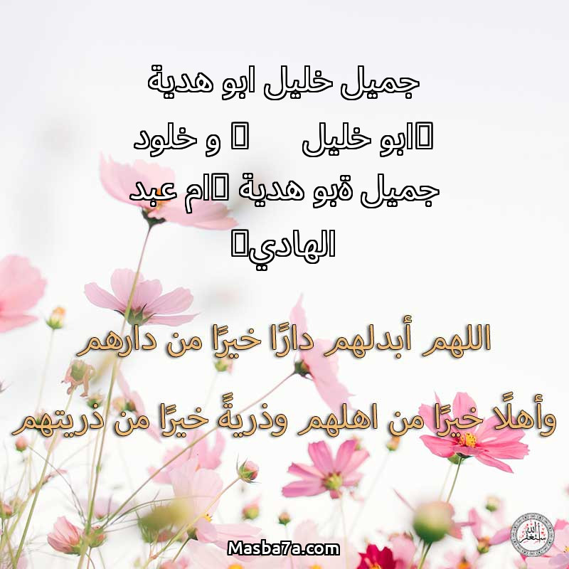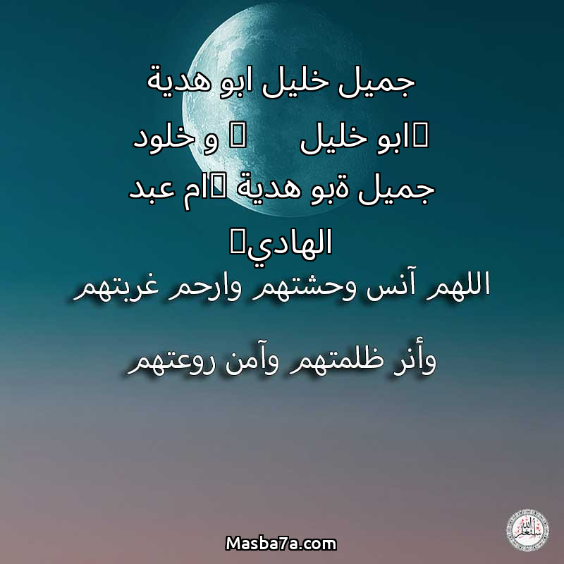 اللهم ارحم ( جميل خليل ابو هدية (ابو خليل ) و خلود جميل ةبو هدية (ام عبد الهادي) ) وانس وحشتهم واجمعنا بهم في جنتك ، اللهم ارحمهم بقدر شوقنا لهم اللهم ارحمهم واغفر لهم.