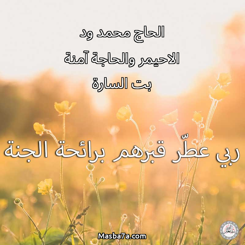 اللهم ارحم ( الحاج محمد ود الاحيمر والحاجة آمنة بت السارة ) وانس وحشتهم واجمعنا بهم في جنتك ، اللهم ارحمهم بقدر شوقنا لهم اللهم ارحمهم واغفر لهم.