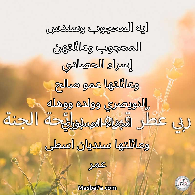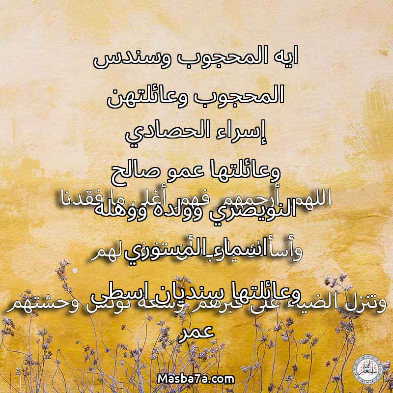 دعاء عن أرواح المرحومين ايه المحجوب وسندس المحجوب وعائلتهن إسراء الحصادي وعائلتها عمو صالح النويصري وولده ووهله اسماء المسوري وعائلتها سنديان اسطى عمر