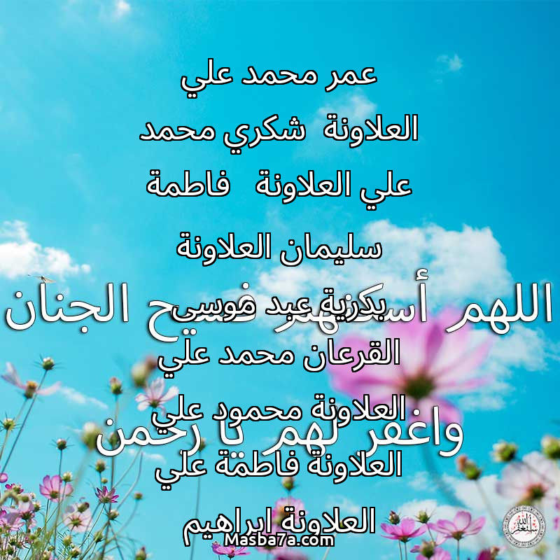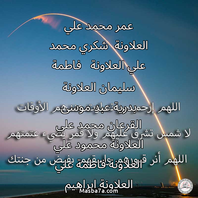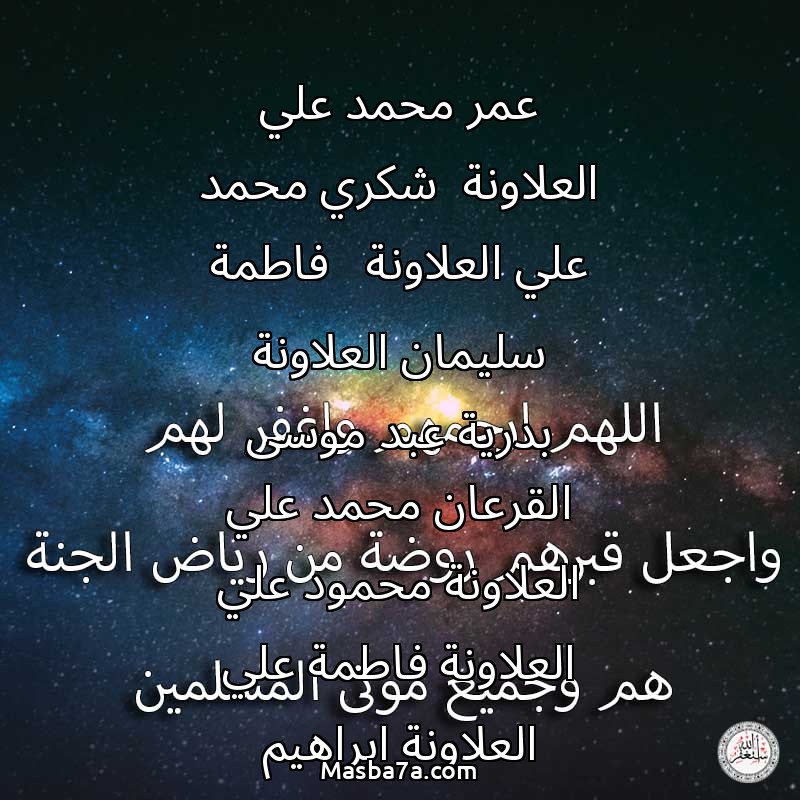 دعاء عن أرواح المرحومين عمر محمد علي العلاونة شكري محمد علي العلاونة فاطمة سليمان العلاونة بدرية عبد موسى القرعان محمد علي العلاونة محمود علي العلاونة فاطمة علي العلاونة ابراهيم سليمان العلاونة محسن قاسم العلاونة محمد الظاهر العلاونة خلود محسن قاسم العلاونة فتحية محسن قاسم العلاونة امنة علي محمد العلاونة