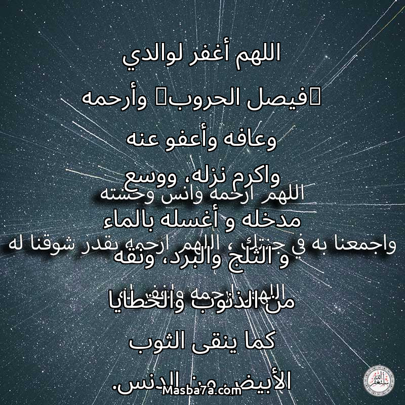 دعاء عن روح المرحوم اللهم أغفر لوالدي (فيصل الحروب) وأرحمه وعافه وأعفو عنه واكرم نزله، ووسع مدخله و أغسله بالماء و الثلج والبرد، ونقه من الذنوب والخطايا كما ينقى الثوب الأبيض من الدنس.