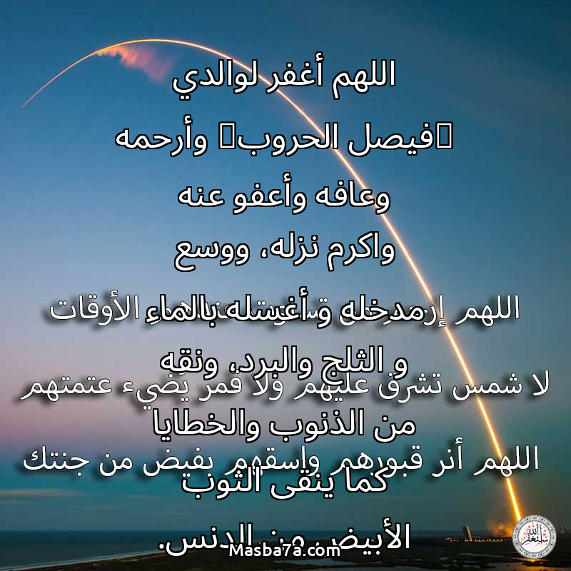 سورة الفاتحة عن روح اللهم أغفر لوالدي (فيصل الحروب) وأرحمه وعافه وأعفو عنه واكرم نزله، ووسع مدخله و أغسله بالماء و الثلج والبرد، ونقه من الذنوب والخطايا كما ينقى الثوب الأبيض من الدنس.