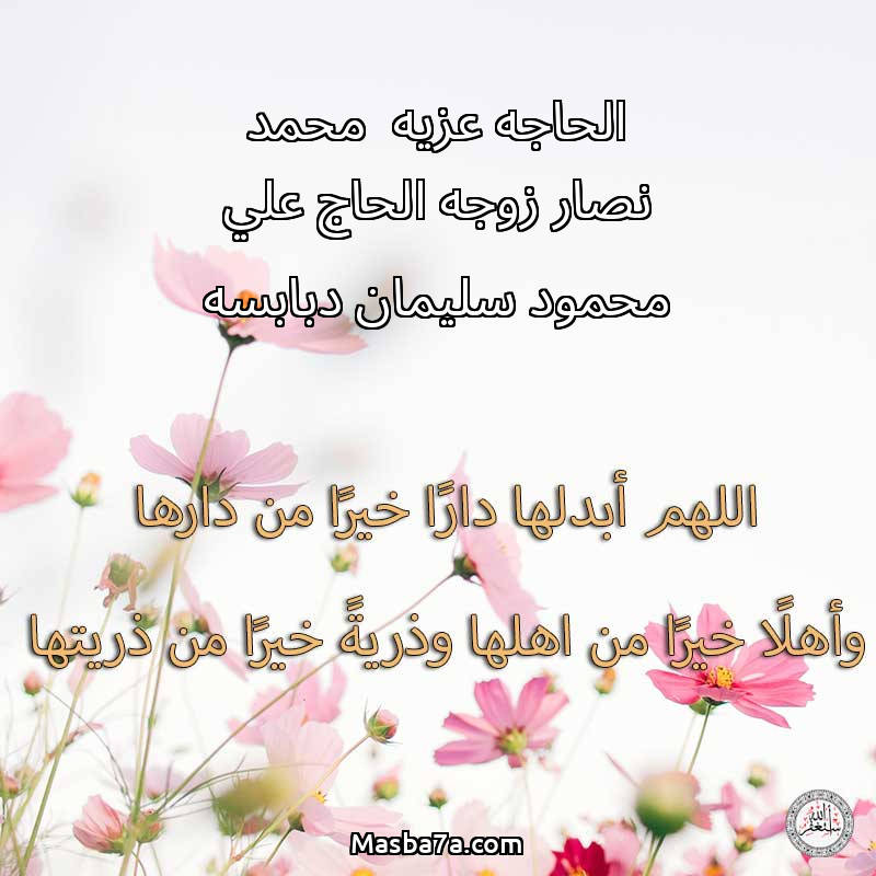 دعاء عن روح المرحومة الحاجه عزيه محمد نصار زوجه الحاج علي محمود سليمان دبابسه