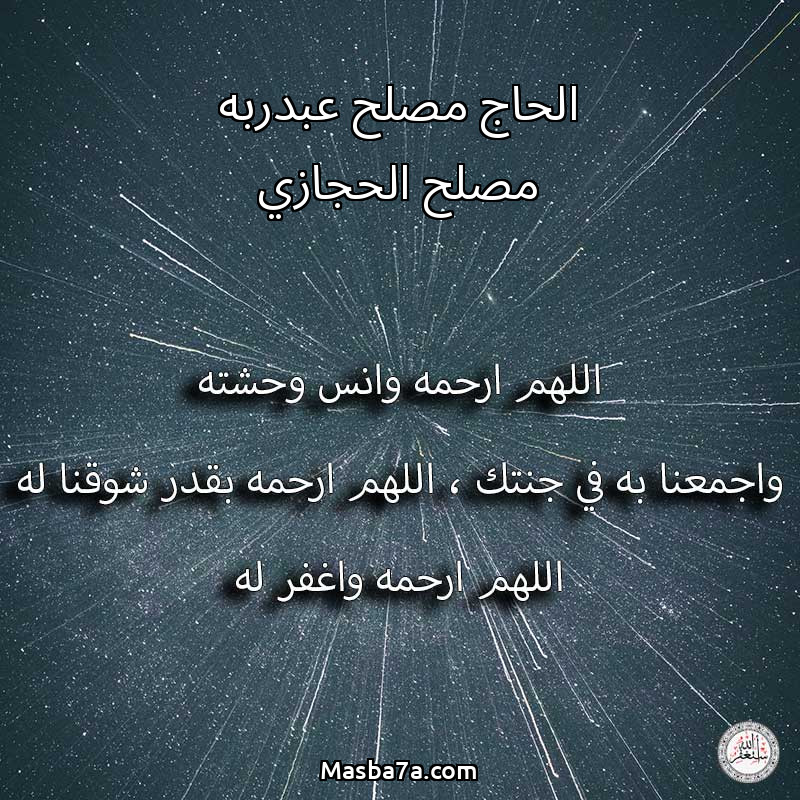 اللهم ارحم ( الحاج مصلح عبدربه مصلح الحجازي ) وانس وحشته واجمعنا به في جنتك ، اللهم ارحمه بقدر شوقنا له اللهم ارحمه واغفر له .