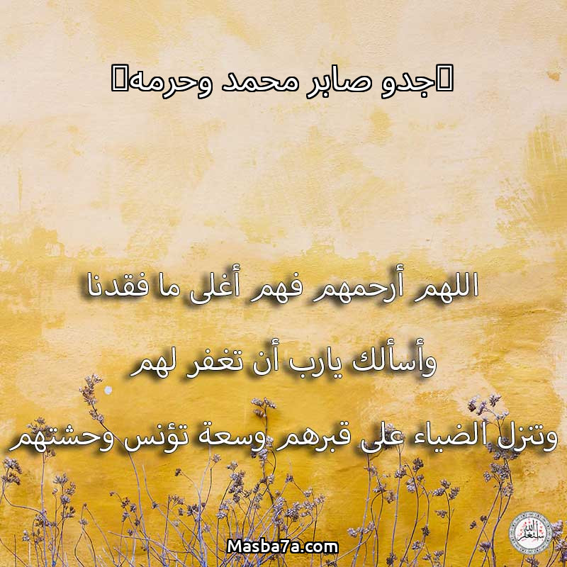 اللهم ارحم ( (جدو صابر محمد وحرمه) ) وانس وحشتهم واجمعنا بهم في جنتك ، اللهم ارحمهم بقدر شوقنا لهم اللهم ارحمهم واغفر لهم.