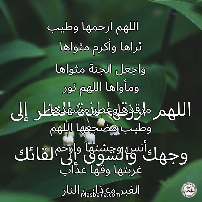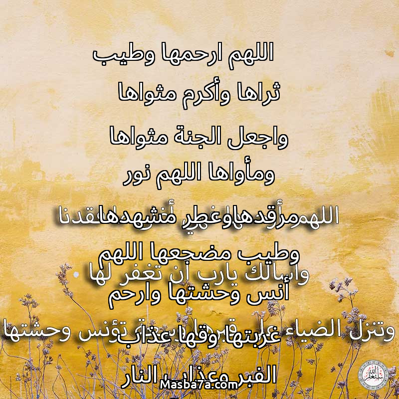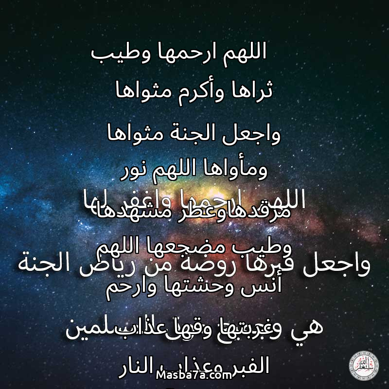 اللهم ارحمها وطيب ثراها وأكرم مثواها واجعل الجنة مثواها ومأواها اللهم نور مرقدهاوعطر مشهدها وطيب مضجعها اللهم أنس وحشتها وارحم غربتها وقها عذاب الفبر وعذاب النار اللهم آمين .
