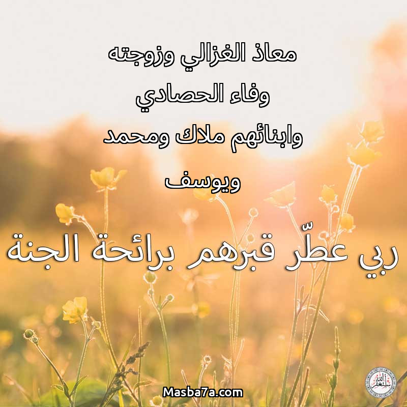 دعاء عن أرواح المرحومين معاذ الغزالي وزوجته وفاء الحصادي وابنائهم ملاك ومحمد ويوسف