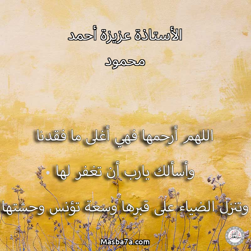 دعاء عن روح المرحومة الأستاذة عزيزة أحمد محمود