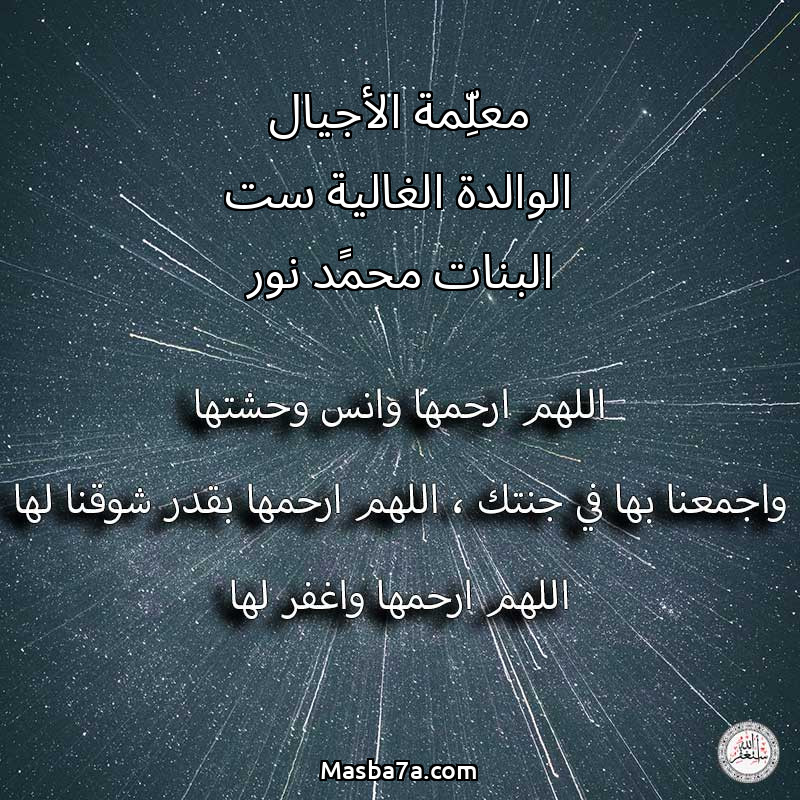 دعاء عن روح المرحومة معلِّمة الأجيال الوالدة الغالية ست البنات محمًد نور