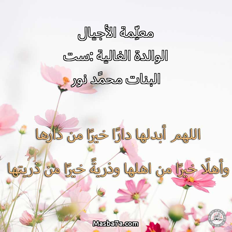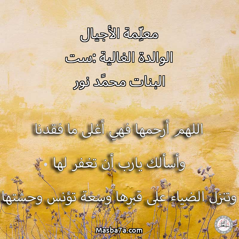 دعاء عن روح المرحومة معلِّمة الأجيال الوالدة الغالية :ست البنات محمًد نور