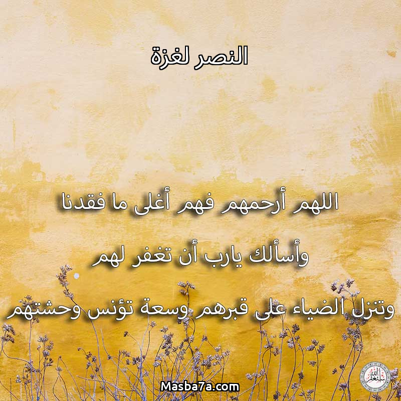 اللهم ارحم ( النصر لغزة ) وانس وحشتهم واجمعنا بهم في جنتك ، اللهم ارحمهم بقدر شوقنا لهم اللهم ارحمهم واغفر لهم.