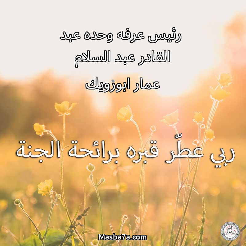 اللهم ارحم ( رئيس عرفه وحده عبد القادر عبد السلام عمار ابوزويك ) وانس وحشته واجمعنا به في جنتك ، اللهم ارحمه بقدر شوقنا له اللهم ارحمه واغفر له .