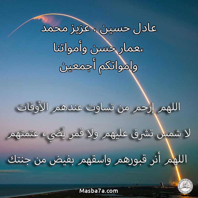 اللهم ارحم ( عادل حسين ، عزيز محمد ،عمار حسن وأمواتنا وامواتكم أجمعين ) وانس وحشتهم واجمعنا بهم في جنتك ، اللهم ارحمهم بقدر شوقنا لهم اللهم ارحمهم واغفر لهم.