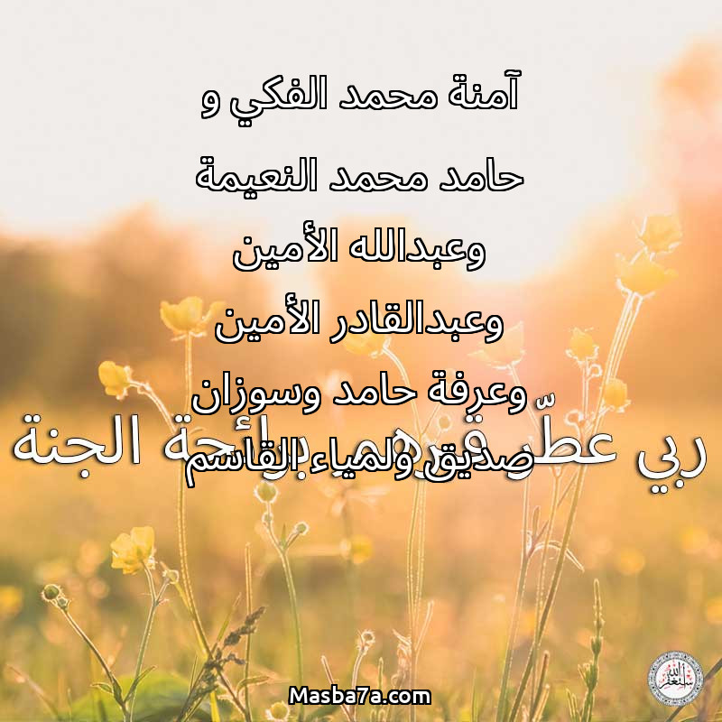دعاء عن أرواح المرحومين آمنة محمد الفكي و حامد محمد النعيمة وعبدالله الأمين وعبدالقادر الأمين وعرفة حامد وسوزان صديق ولمياء القاسم