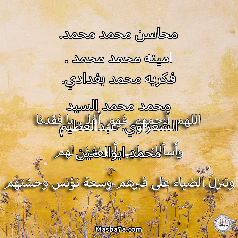 دعاء عن أرواح المرحومين محاسن محمد محمد. امينه محمد محمد . فكريه محمد بغدادي. محمد محمد السيد الشعراوي. عبدالعظيم محمد ابوالعنين