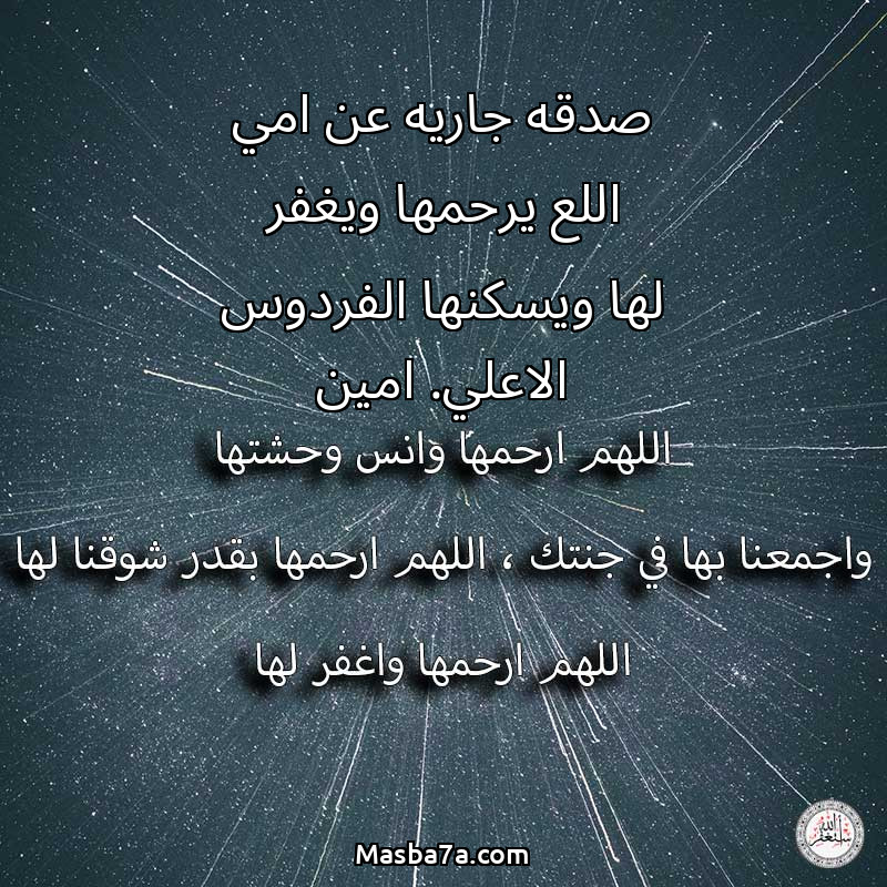 صدقه جاريه عن امي اللع يرحمها ويغفر لها ويسكنها الفردوس الاعلي. امين