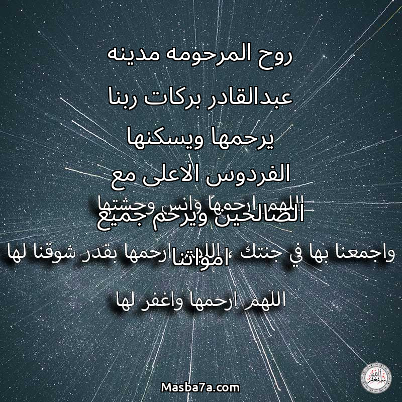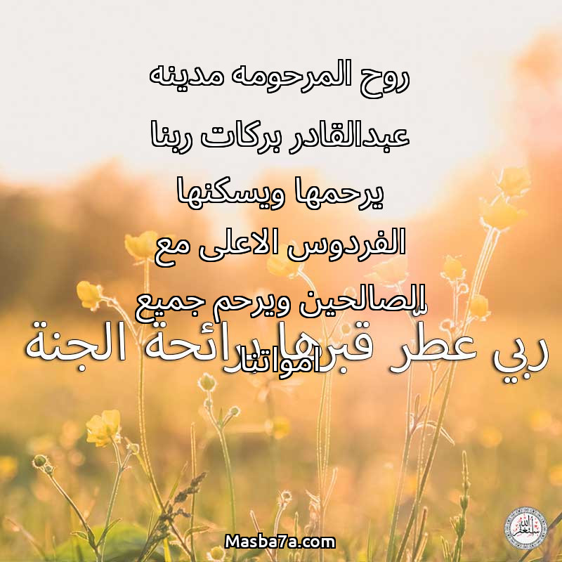 دعاء عن روح المرحومة روح المرحومه مدينه عبدالقادر بركات ربنا يرحمها ويسكنها الفردوس الاعلى مع الصالحين ويرحم جميع امواتنا