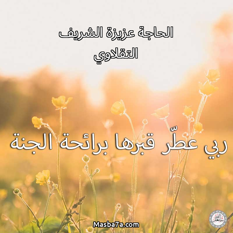 اللهم ارحم ( الحاجة عزيزة الشريف التقلاوي ) وانس وحشتها واجمعنا بها في جنتك ، اللهم ارحمها بقدر شوقنا لها اللهم ارحمها واغفر لها .