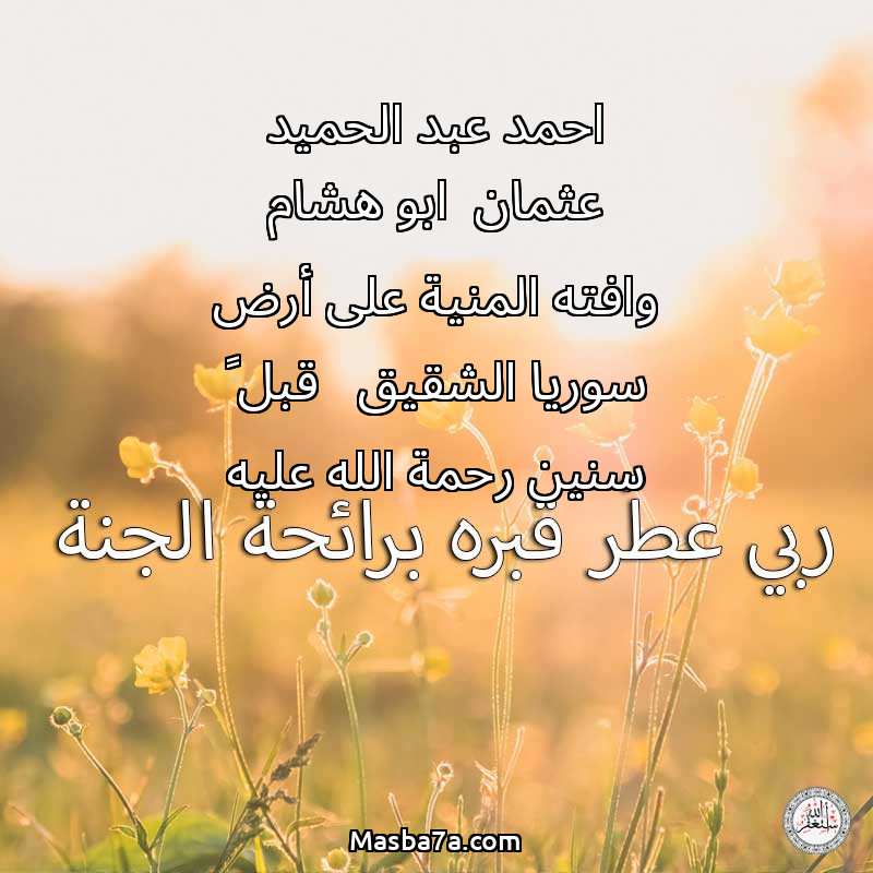 دعاء عن روح المرحوم احمد عبد الحميد عثمان ابو هشام وافته المنية على أرض سوريا الشقيق قبل ٨ سنين رحمة الله عليه