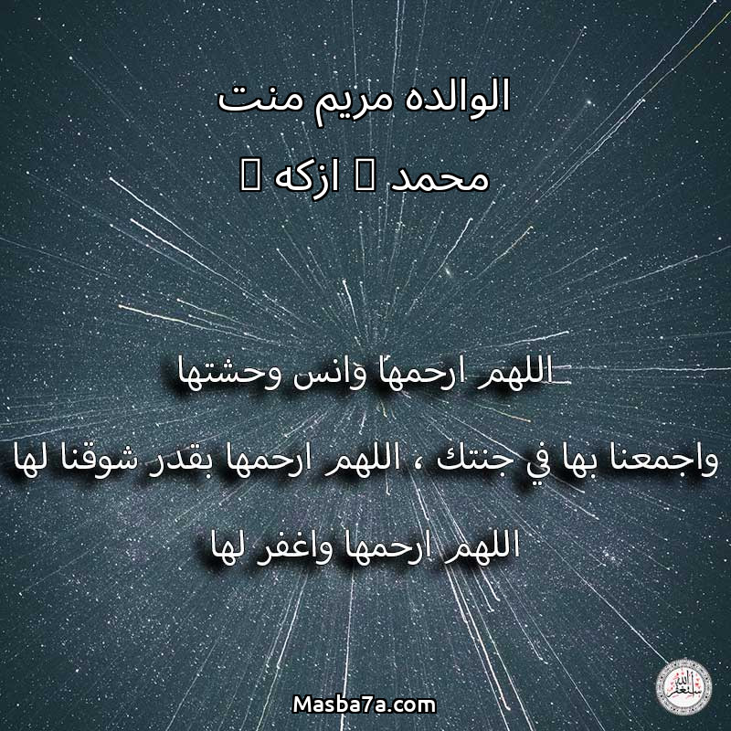 اللهم ارحم ( الوالده مريم منت محمد ( ازكه ) ) وانس وحشتها واجمعنا بها في جنتك ، اللهم ارحمها بقدر شوقنا لها اللهم ارحمها واغفر لها .