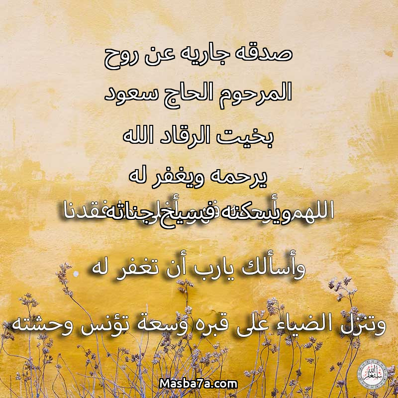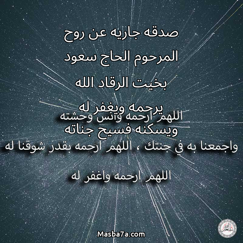دعاء عن روح المرحوم صدقه جاريه عن روح المرحوم الحاج سعود بخيت الرقاد الله يرحمه ويغفر له ويسكنه فسيح جناته