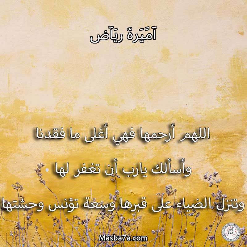 اللهم ارحم ( آمًيَرهّ ريَآض ) وانس وحشتها واجمعنا بها في جنتك ، اللهم ارحمها بقدر شوقنا لها اللهم ارحمها واغفر لها .